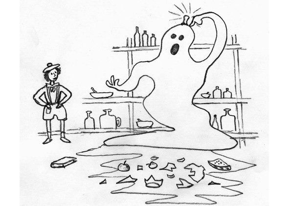 – Постой! Не бросай меня! – взмолилось приведение. – Я расскажу тебе всё… Э-э-э… Всё, что смогу вспомнить! Понимаешь, когда я потянулось к одному бесценному предмету… не помню, правда, какому… когда я потянулось к предмету за которым меня прислал сюда… не припомню кто прислал… одним словом, когда я потянулось за каким-то ценным предметом, спрятанным здесь, на меня свалилась банка твоего замечательного варенья и стукнула меня прямо по макушке. После этого я даже не могу вспомнить своего имени!