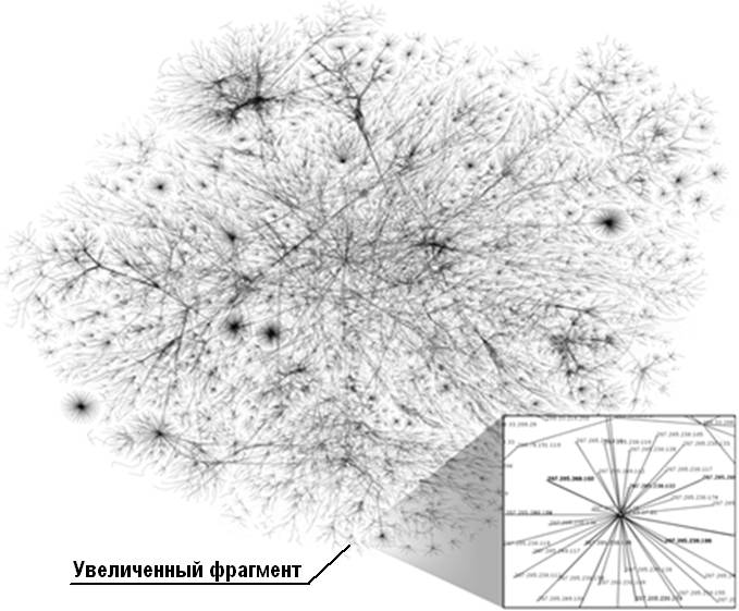 Рисунок 3. Интернет, абстрактная карта 30% глобальной сети, по данным сайта opte.org. 2005 год.