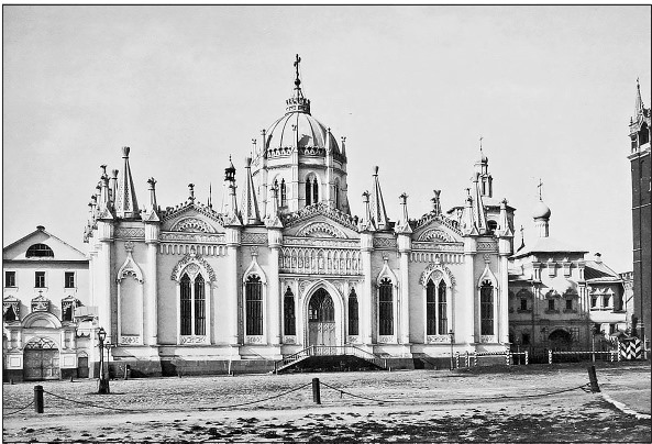 Третью церковь в монастыре освятили во имя св. великомученицы Екатерины. Выстроенная в псевдоготическом стиле, которым так увлекались в конце XVIII – начале XIX в., она первой встречала посетителя, подходившего к Вознесенскому монастырю. Совсем не похожая на русское церковное здание, она скорее была светским, даже несколько кокетливым, вся украшенная мелкими декоративными деталями, как будто одетая в иноземную кружевную мантилью.