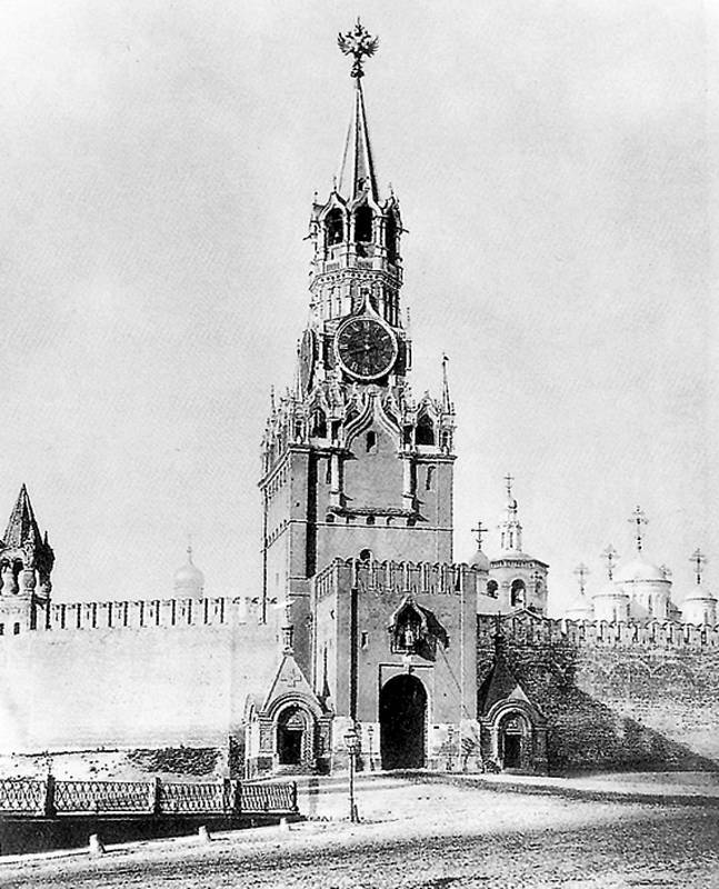 Спасская башня считается главной кремлевской башней: через ее ворота происходили торжественные выходы царей и патриархов, здесь в Кремль въезжали иностранные послы и совершался торжественный въезд царей на коронацию. Как писал автор популярного путеводителя Москвы XIX в. И.К. Кондратьев, «одним из самых благоговейных предметов уважения почитаются в Москве Спасские ворота, ведущие в Кремль от Лобного места. И действительно, немного найдется мест не только в Москве, но и в России, которые были бы столько веков таких событий свидетелями. Спасские ворота построены в самом сердце Москвы, одною стороной к Лобному месту и Красной площади, другою – в Кремль, где началась и развилась сила и слава России… Тут вообще совершилось столько славного и дивного, что невольно удивляешься этой святыне и благоговеешь перед ней. Но тут бывало немало и того, перед чем содрогается сердце русского человека. Она видела буйные празднества Дмитрия Самозванца, когда он выезжал веселиться со своими ляхами! Она видела кровавые казни на Красной площади при Иоанне Грозном и там же возведенного под секиру палача Василия Шуйского! Тут езжал и Наполеон, завоеватель Европы, и все исторические лица, окружавшие его. События бедственных годин и счастливые, радостные явления – все это напоминают нам Спасские ворота, которыми проходила, так сказать, вся русская история. Кто без благоговейного чувства смотрит на эти ворота, на эту башню, красноречивую свидетельницу многих веков жизни России, тот не знает нашей истории».