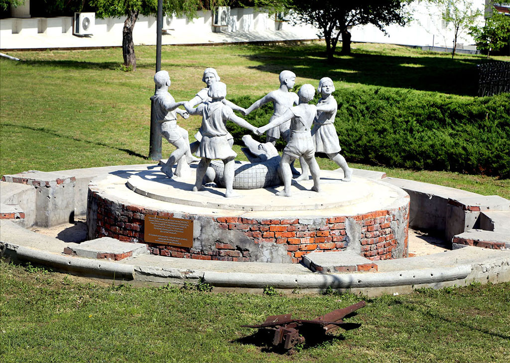 2. Фонтан «Бармалей» для детей после бомбежки.