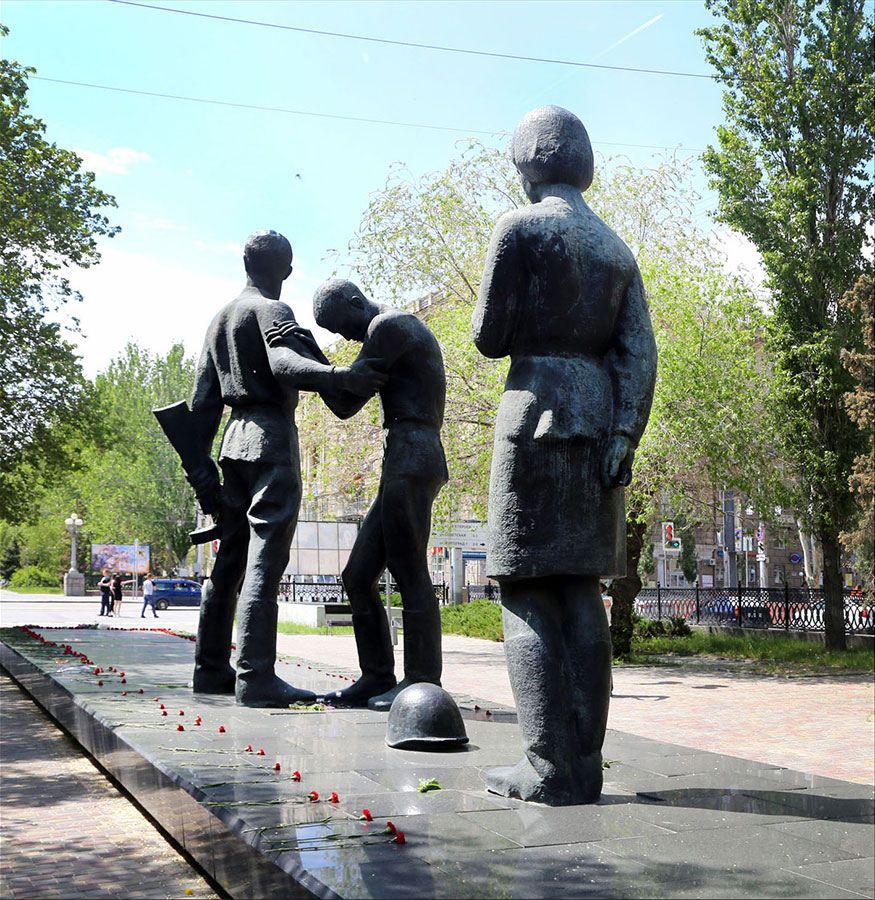 8. У памятника комсомольцам-защитникам Сталинграда.