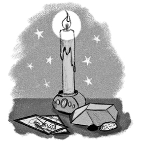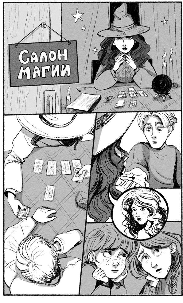 На кухне нашей квартиры мы обустроили магический салон. Закрыли шторы, расставили на столе свечи в старинных подсвечниках. Регина принесла магический шар, карты и кристаллы, нарядилась, как цыганка-гадалка.
