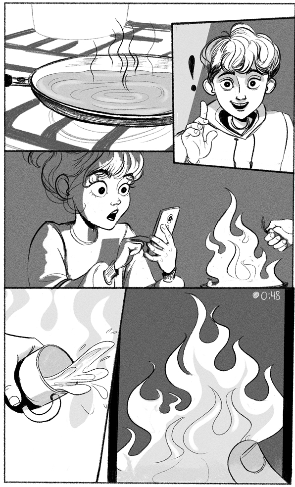 – Это ещё не всё. – Я подмигнул в камеру и плеснул на пламя воду.
