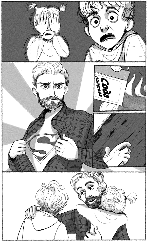 Папа появился, как настоящий супергерой. Сковородку он засыпал содой из коробки поблизости, сдёрнул занавеску и затоптал ногами. Потом обхватил рыдающую Яну и прижал к себе. Я смотрел на них из угла, боясь подойти.