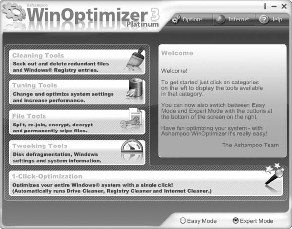 Рис. 1.5. Окно приложения Ashampoo WinOptimizer