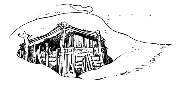 Неподалёку от ямы старатели поставили кряжистое, в восемь венцов, зимовьё из неошкуренной лиственницы с плоской дерновой крышей. В маленький оконный проём, размером локоть[8] на локоть, был вставлен высушенный сохатиный пузырь, сквозь который сочился в жилище жёлтый гниловатый солнечный свет. Внутри жались к чёрным стенам сбитые из колотых плах нары, застеленные сухой болотной травой и покрытые облезлыми шкурами. В центре громоздился стол с неизменной горой грязной посуды. В углу нещадно коптила печь-каменка, наспех обмазанная глиной.