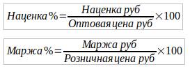 Формулы расчета маржи и наценки.