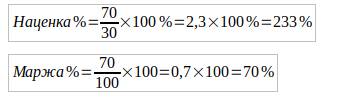 *Наценка в рублях=100-30=70 рублей
