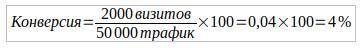 Конверсия по превращению трафика в визиты. Люди проходят мимо магазина и некоторые из них заходят, конверсия покажет сколько процентов заходит в магазин.