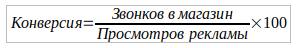Конверсия рекламы. Рекламу видят или слышат много людей, но переходят на сайт, звонят или приходят в магазин не все. Конверсия покажет какой процент людей обратится по рекламе.
