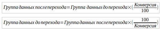 Связанные формулы позволяют по конверсии посчитать одну из групп данных, если известна другая.