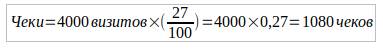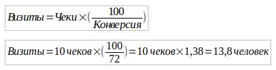 *Конверсия визитов в чеки = 72%