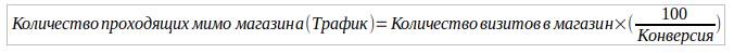 Конверсия проходящих мимо в посетителей магазина = 2%