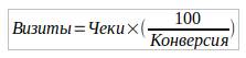 С помощью данных конверсии считаем необходимое количество визитов в магазин.