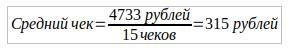 -Средний чек = 315 рублей