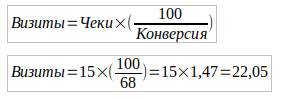 *Конверсия визитов в чеки = 68%