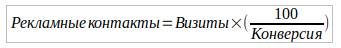 *Конверсия рекламных контактов в визиты = 2%