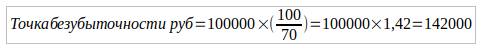 -Точка безубыточности = 420000 рублей/мес