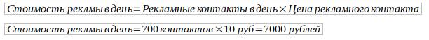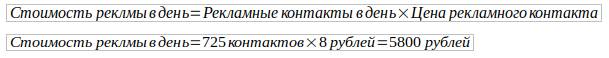 Далее по цене рекламного контакта рассчитываете стоимость рекламы в месяц и за день.