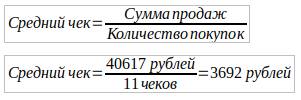 -Средний чек = 3692 рубля
