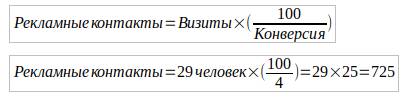 Дальше рассчитываем необходимое количество рекламных контактов.