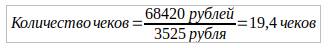 Количество чеков = 20 штук