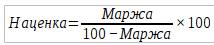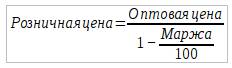 Розничная цена=Оптовая цена/(1-Маржа/100)