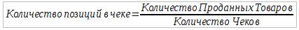 Для расчета берется количество проданных товаров за определенное время: день, неделю, месяц, год. Это число делится на количество пробитых чеков за это же время.