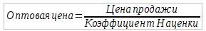 Розничная цена=Оптовая цена * Коэффициент наценки