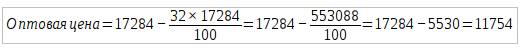 Для определения оптовой стоимости используются те же формулы, только вместо цены одного товара применяется сумма розничной стоимости группы товаров.