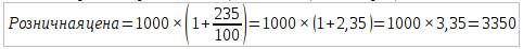 3. Розничная цена = 1000 + 235% = 3350 рассчитывается на калькуляторе