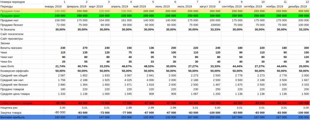 Вся работа с финансовым планом показана на реальном плане одного магазина и содержит реальные показатели работы.
