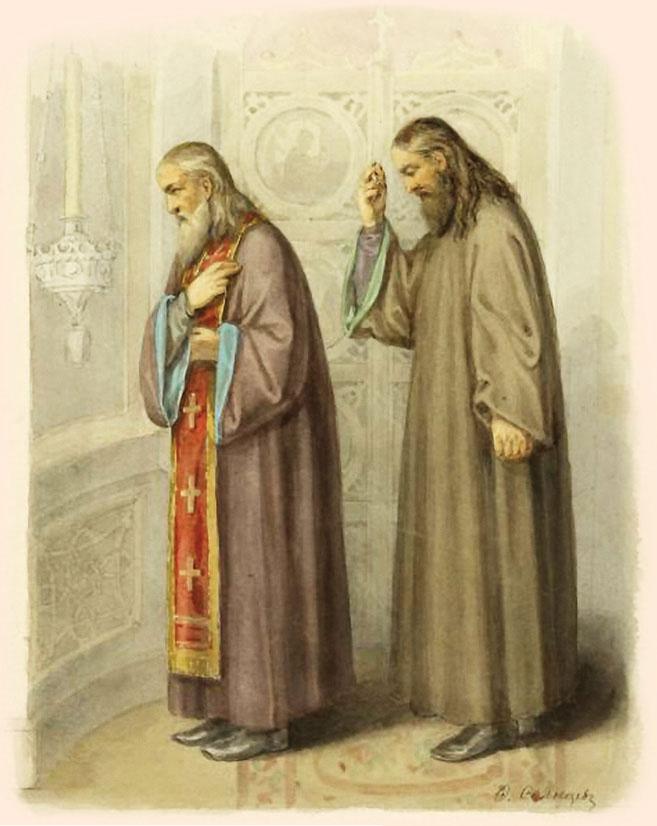 Ф. Солнцев. Священник и дьякон перед началом литургии. Рисунок из книги «Древности Российского государства». Ранее 1853 г.