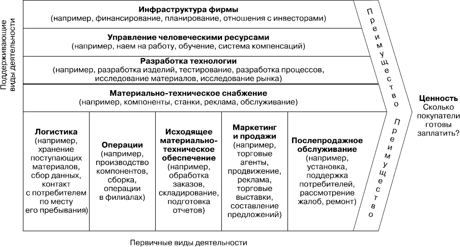 Идея Портера была очень занятной для его времени. Он говорил, что стоит рассматривать этапы производства товара/услуги с точки зрения того, во сколько нам обходится каждый этап. Причем он предлагал рассматривать их в довольно узком смысле: сколько стоит конкретный шаг. Этапность помогает понять, во что нам обходится каждый шаг и стоит ли он таких затрат. Так создается конечная стоимость продукта.