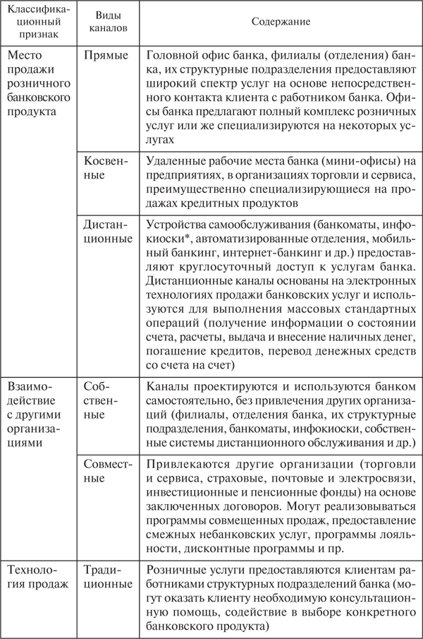 Таблица 1.4. Классификация каналов доставки розничных услуг