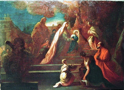У бездетных жителей Назарета Иохима и Анны долго не было детей. Их обращение к Богу было услышано и у них родилась дочь, которую назвали Марией. С раннего детства она выделялась среди сверстников живостью ума и нравственным поведением. В 3 года родители отвели ее в Храм, где она провела свое детство вплоть до 12 лет. Сцена "Введение во храм" является одной из самых распространенных в религиозной живописи Возрождения и Барокко.