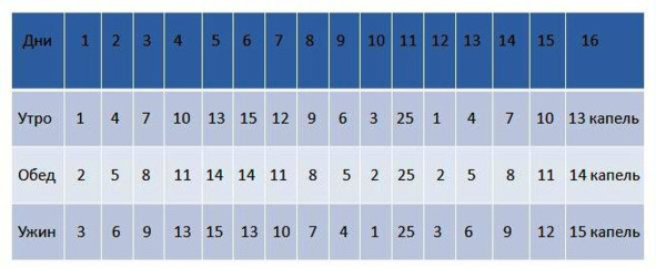 – Для приготовления лекарства нужно 200 г. чеснока прокрутить 2 раза на мясорубке и в эту кашицу влить 100 г. 96% спирта. Смесь хранят в темной бутылочке в прохладном месте 3 недели, затем процеживают. Для хранения ставят в прохладное место еще на 3 недели, затем процеживают и хранят еще 3 дня в тех же условиях. Затем к настойке добавляют 50 г. меда, размешивают и добавляют 10 г. спиртовой вытяжки прополиса, все перемешивают и принимают каплями за 30 минут до еды, разбавляя в ложке с водой по схеме: