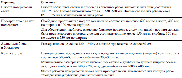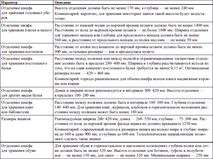 Таблица 1.1. Некоторые функциональные размеры мебели для хранения