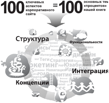 Материал для этой книги готовился и обобщался в течение 11 лет. Все это время (…ну хорошо… пусть последние пять лет) мы искали наиболее интересную и удобную форму его подачи. В результате сложилась простая и, на наш взгляд, удачная концепция: представить корпоративный веб-сайт через призму 100 ключевых аспектов его работы.