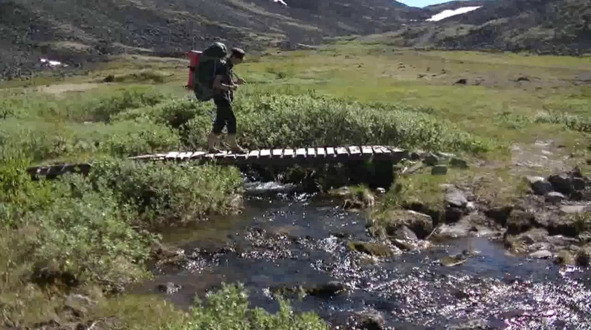 Но надо продолжать поход. Ведь лето сейчас, ночей нет. Можно идти круглые сутки, лишь бы хватило сил. Вот только здесь море речек и ручейков, что сбегаются с гор и питают Эльмрайок. Приходится вспоминать козлиные повадки.