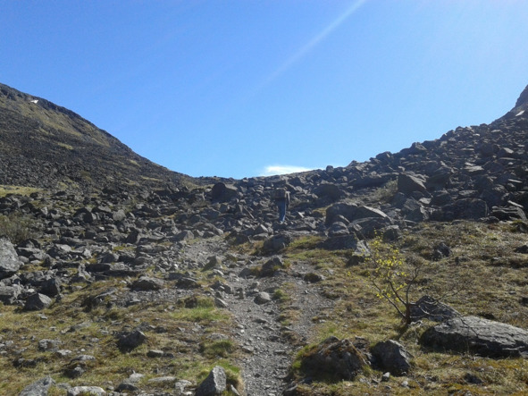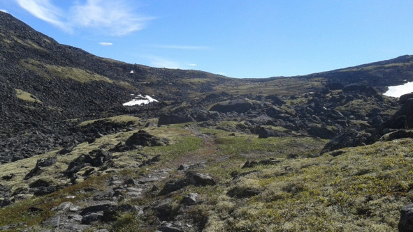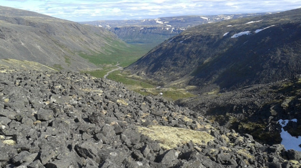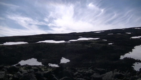 Вот и вершина! Вернее, плато. Каменистое плато. Ну чем не плато Путоран? То же Заполярье, те же плоские вершины, те же склоны и ущелья. Разве что климат помягче из-за влияния Гольфстрима. Да и добраться сюда намного легче, чем до плато Путоран.