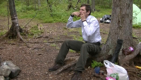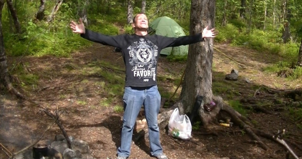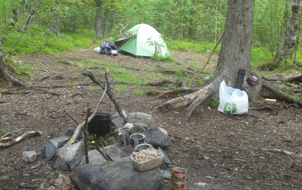 Дошли! За восемь часов! Разжигаем костер, ставим на огонь котелок, засыпаем гречку, сдабриваем тушенкой. И приступаем к вожделенной трапезе. Вкуснятина!