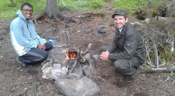 И костер развести нечем. Предшественники еще до нас весь сухостой в окрестностях уже подчистили и сожгли. Но мы в результате долгих поисков все-таки наскребли малую толику дров и запалили костер. Есть было нечего, в обед все доели.