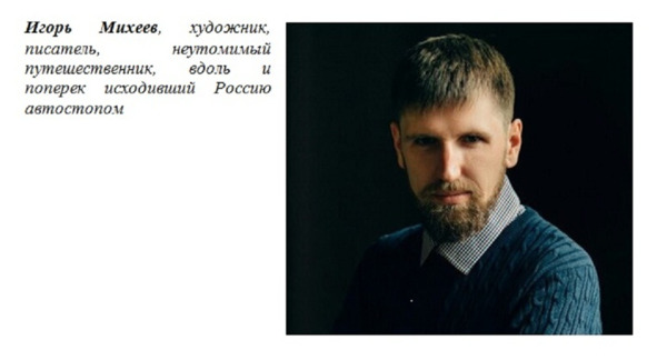 Заявился, как обычно, старый друг Игорь Михеев. Он всегда заявляется, когда мимо проходит. Кроме того, что Игорь художник (обложки моих книг – его творения) и писатель (почитайте его книгу «Как во сне», удивитесь!), так он еще заядлый автостопщик. Каждое лето отправляется куда глаза глядят. Вот и сейчас, возвращаясь с Байкала, заглянул ко мне. И, потягивая мою изумительную настойку на морошке, предложил: