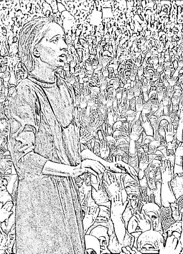 Раздались дружные ритмичные хлопки, те, кто стоял перед помостом в передних рядах, расступились, как по команде, образуя коридор, ведущий прямо к наспех сколоченным деревянным ступеням. Она неторопливо и степенно, как инструктировали, двинулась вперёд, пряча в нагрудный карман жилета бумагу с текстом своей речи. Промелькнул испуг, что за скомканный документ, столь ценный и важный, по головке не погладят. Но эту мысль она решительно отогнала, и с каждым мгновением её воля крепла, осанка становилась прямей, а каждый следующий шаг – твёрже и уверенней.