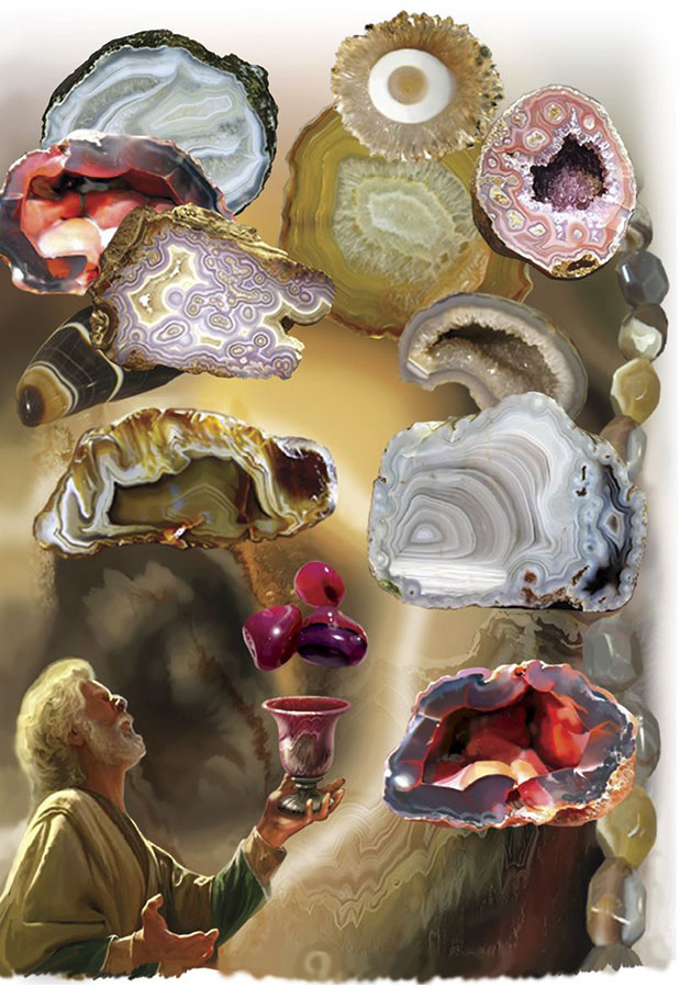 Одной из дочерей императора Павла I – княгине Марии Павловне – принадлежала брошь с изображением головы богини Афины с оливковой ветвью на шлеме и головой медузы Горгоны на щите. Все эти детали были вырезаны из одного камня – агата. Характерный признак минерала – множество концентрических слоев, которые хорошо видны на срезах. В некоторых агатах в одном сантиметре толщины может содержаться до 7000 различных слоев. Разумеется, такое тонкое строение камня удается рассмотреть лишь под микроскопом. У других камней полосы широкие. Такие агаты издавна использовали для резьбы. Например, делали из них инталии – камни с резным узором, которые обычно использовались как печати. Цилиндрические печати из агата существовали в Междуречье уже за четыре тысячи лет до нашей эры. Древнегреческие мастера резали из агатов камеи с выпуклыми изображениями. При этом искусные мастера использовали слоистое строение камня для подчеркивания деталей изображения. Лицо обычно резали из белого слоя камня, а черный и бурый слои оставляли для волос и одежды. Именно так была выточена брошь княгини Марии Павловны.