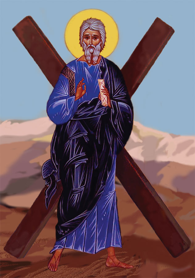 Он сопровождал своего Учителя вплоть до конца и стал свидетелем его распятия, воскресения и вознесения. Затем, согласно легендам, Андрей начал странствовать, проповедуя слово Божие. Он прошел через Фракию и Македонию и добрался до скифских земель на берегах Черного моря, которое в то время называли «Гостеприимным» – Эвксинским Понтом. Затем он дошел до Херсона и поднялся вверх по Днепру до места, где стоит теперь город Киев. Своим спутникам он сказал при этом: «Видите эти горы? Воссияет на них благодать Божия и возникнет великий город со многими церквами». Некоторые ученые говорят, что это лишь предание и апостол Андрей не заходил так далеко от своих родных земель. Возможно. Однако этого святого издавна особо почитают на Руси. Первая церковь в честь апостола Андрея была построена в Киеве еще в 1086 году по указу великого князя Всеволода Ярославича, сына Ярослава Мудрого. Вместе с тем Андрей – святой, которого чтит и Западная христианская церковь.