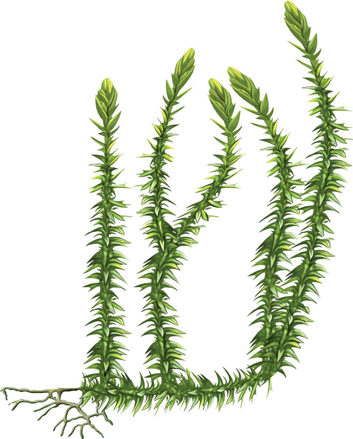 Для того чтобы отправиться в далекое прошлое нашей планеты, не нужно изобретать машину времени. Достаточно отправиться в хвойный или смешанный лес, найти не слишком заросшую травой полянку и внимательно присмотреться к встречающимся на ней растениям. Наверняка среди опада и старой хвои обнаружатся тонкие длинные плети плауна булавовидного. Названий у этого растения много – зеленка, деряба, топтун, плаун… Его длинные зеленые разветвленные плети змеятся под ногами, достигая порой длины 10 метров. Кверху на высоту 10–15 сантиметров поднимаются отростки, на вершине которых расположены колоски. Создается впечатление, что растение не может приподняться выше, оно стелется, словно плывет по земле. Отсюда и название – плаун. Плети и отростки плауна покрыты многочисленными мелкими листочками, похожими на плоские иголочки. Не случайно англичане называют плаун «бегущей сосенкой».