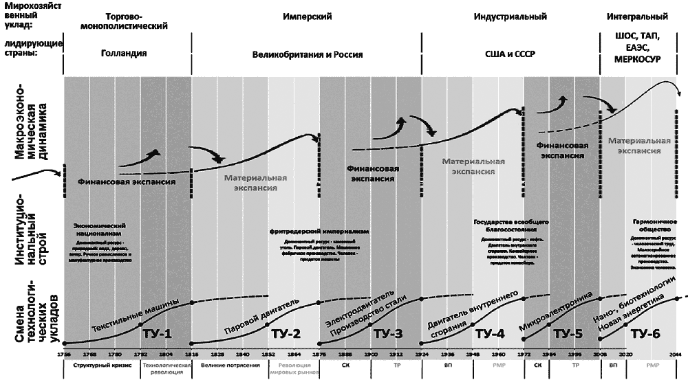 Рис. 6. Периодическая смена мирохозяйственных укладов